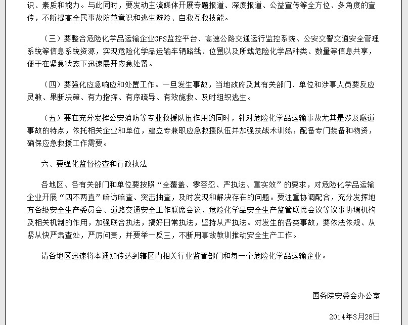 请各地区迅速将本通知传达到辖区内相关行业监管部门和每一个危险化学品运输企业。