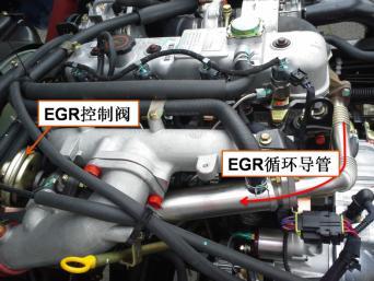 三、找EGR系统的废气循环导管和EGR阀门。废气循环导管与排气管相连,取一部分废气再循环,另一部分废气则从排气管排出。