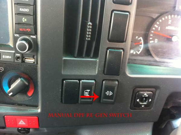以进口五十铃为例,当DPF需要再生时,需操作按扭来完成
